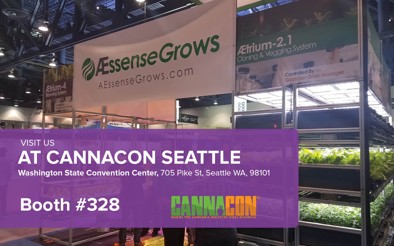 AEssenseGrows returned to CannaCon with the latest in advanced aeroponic systems. We were among the thongs of vendors at the Washington State Convention Center, where we demonstrated, with live plants, the AEtrium-4 high-yield blooming system, the AEtrium-2 cloning and vegging system, and the Guardian Grow Manager software automation suite.